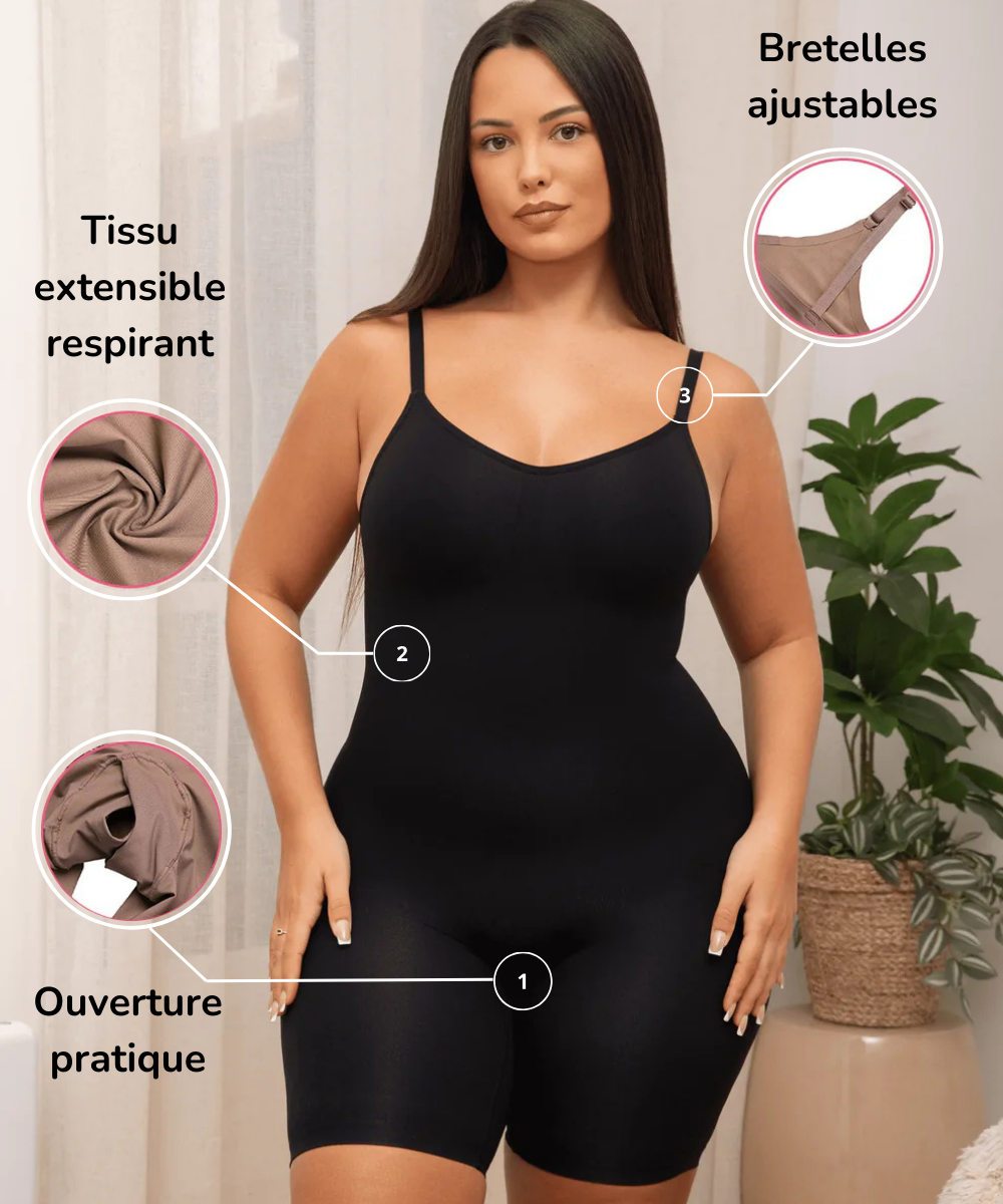 Idéal pour sublimer chaque silhouette en s'adaptant parfaitement à votre corps grâce à ses bretelles ajustables et son système d'ouverture pratique à l'entrejambe